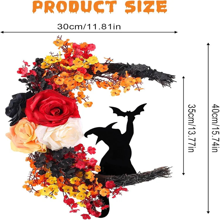 Ein Blickfang voller Magie- dieser kunstvoll gestaltete Halloween-Kranz kombiniert einen Halbmond mit Katzenmotiv und zarten Rosenakzenten zu einer festlichen Deko mit mystischem Flair. Ob an der Haustür, im Fenster oder als Wandschmuck – er bringt sofort Herbststimmung und Charakter in dein Zuhause. 🖤