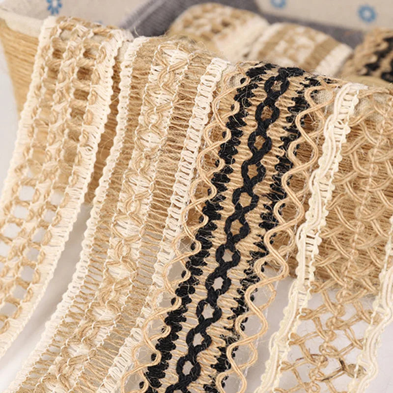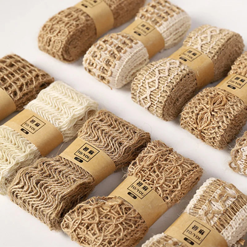 Diese dekorativen Jutebänder mit Spitzen-Details- verbinden natürlichen Charme mit festlicher Eleganz. Ob für Geschenkverpackungen, Kränze, Vasen-Deko oder DIY-Projekte – die Kombination aus Sackleinen und feiner Stickerei schafft einen besonderen Look, der perfekt zu Weihnachten passt. 🎄