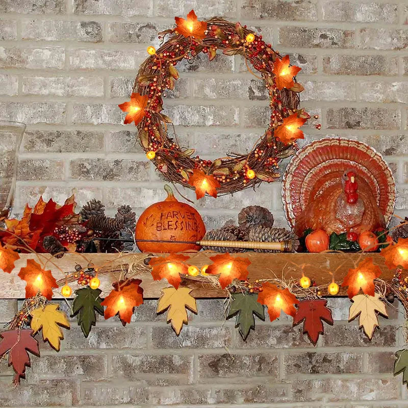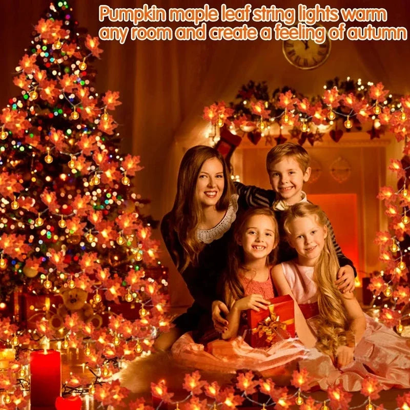 Diese beleuchtete Herbstgirlande- fängt das Gefühl goldener Herbsttage perfekt ein. Mit ihren leuchtenden Ahornblättern und dem sanften Licht schafft sie eine gemütliche, stimmungsvolle Atmosphäre – ob als Deko im Wohnzimmer, auf dem Tisch oder am Fenster.