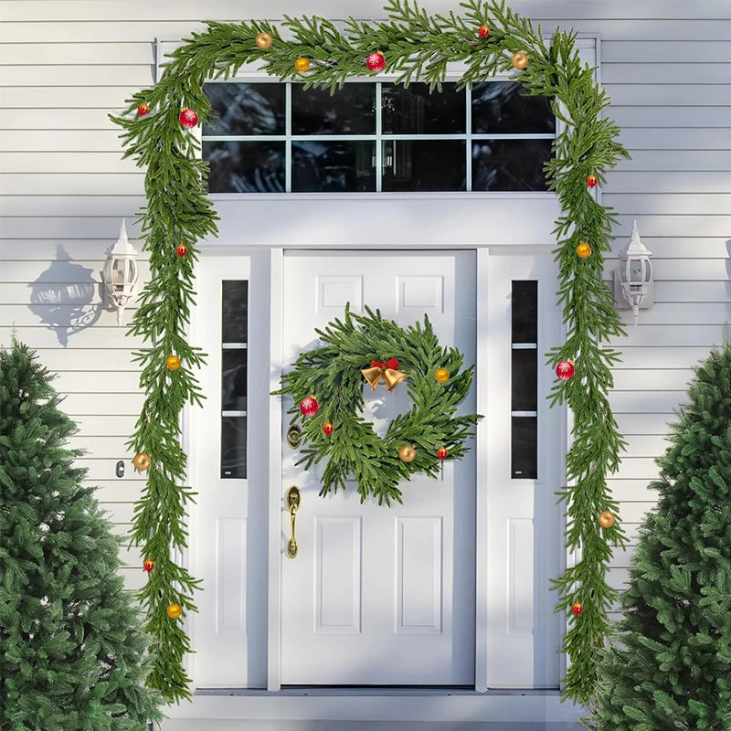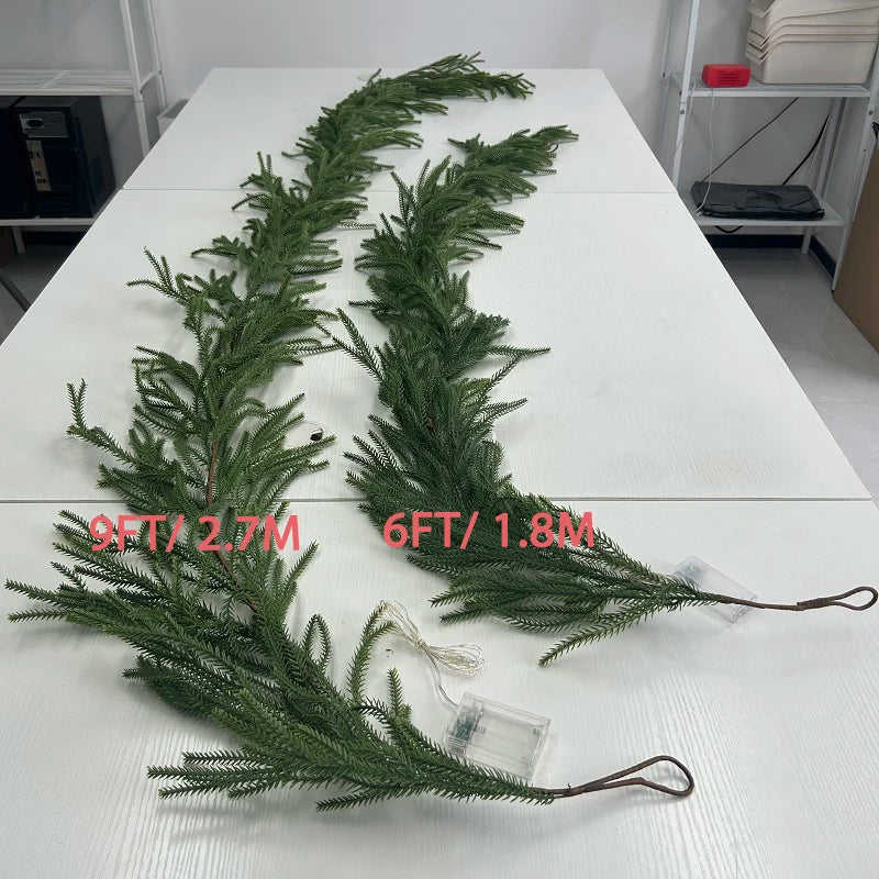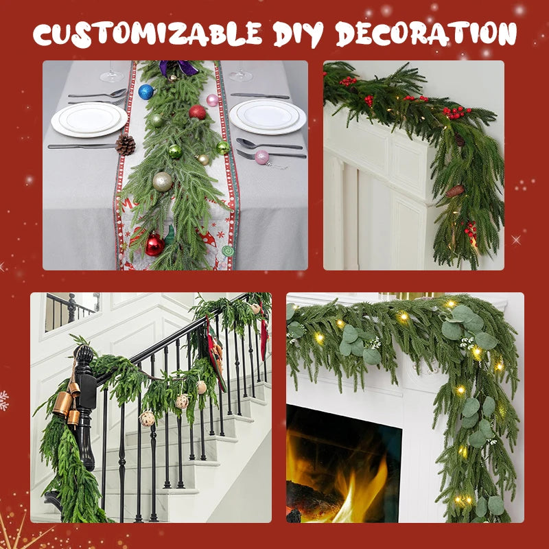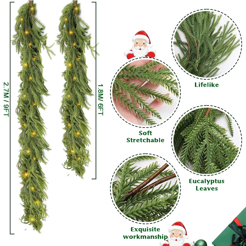 Diese kunstvolle Weihnachtsgirlande- aus detailreichen Norfolk-Kieferzweigen bringt festliche Wärme in dein Zuhause. Mit integrierter Lichterkette (Dauerlicht oder Blinkmodus) setzt sie strahlende Highlights auf Kamin, Tisch oder Fensterbank – und sorgt für ein elegantes, weihnachtliches Ambiente. 💫