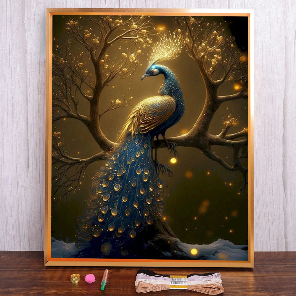 Kreuzstich-Set- Goldene Pfauenpracht