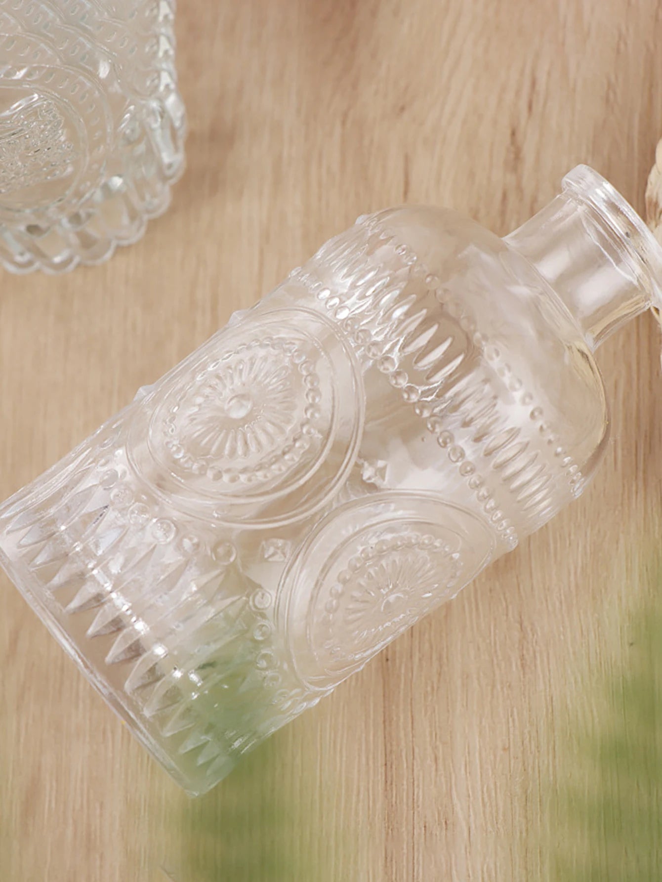 Diese Retro-Vase- aus geprägtem Glas bringt subtile Eleganz und Leichtigkeit in dein Zuhause. Das strukturierte Glas bricht das Licht auf sanfte Weise und verleiht Trockenblumen, Zweigen oder Einzelstielen eine besondere Tiefe. Ideal, um mit wenig Aufwand eine ruhige, stilvolle Atmosphäre zu schaffen. ✨