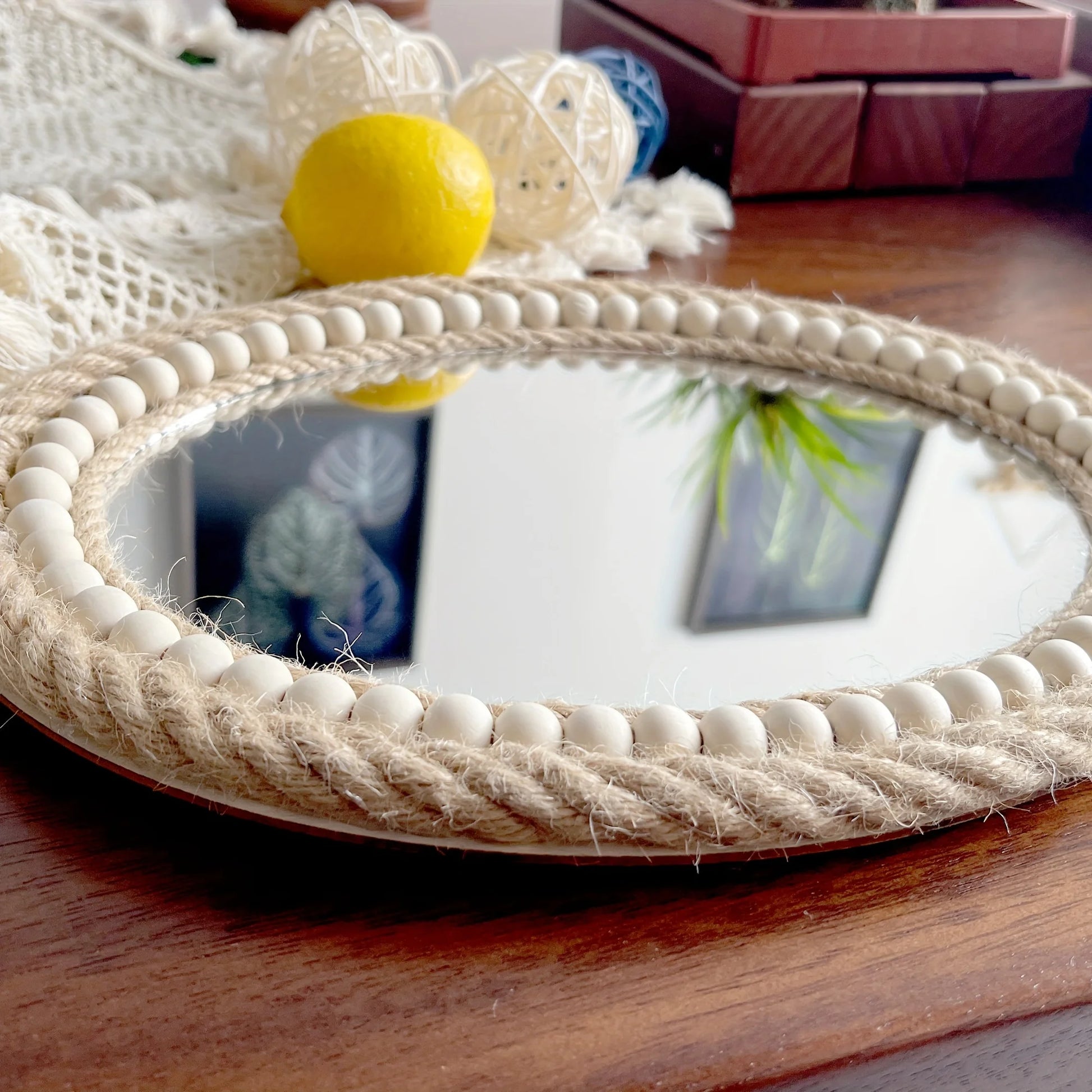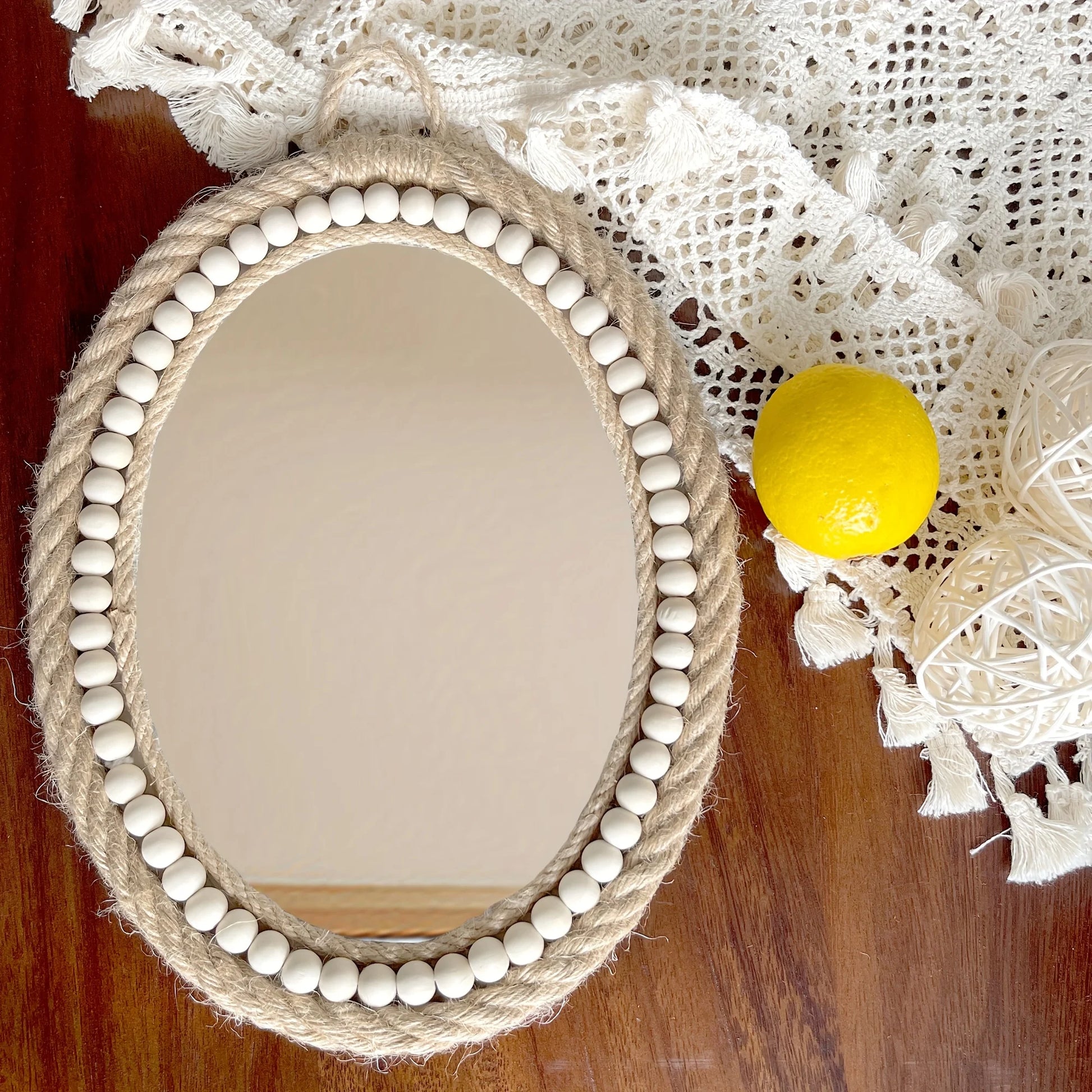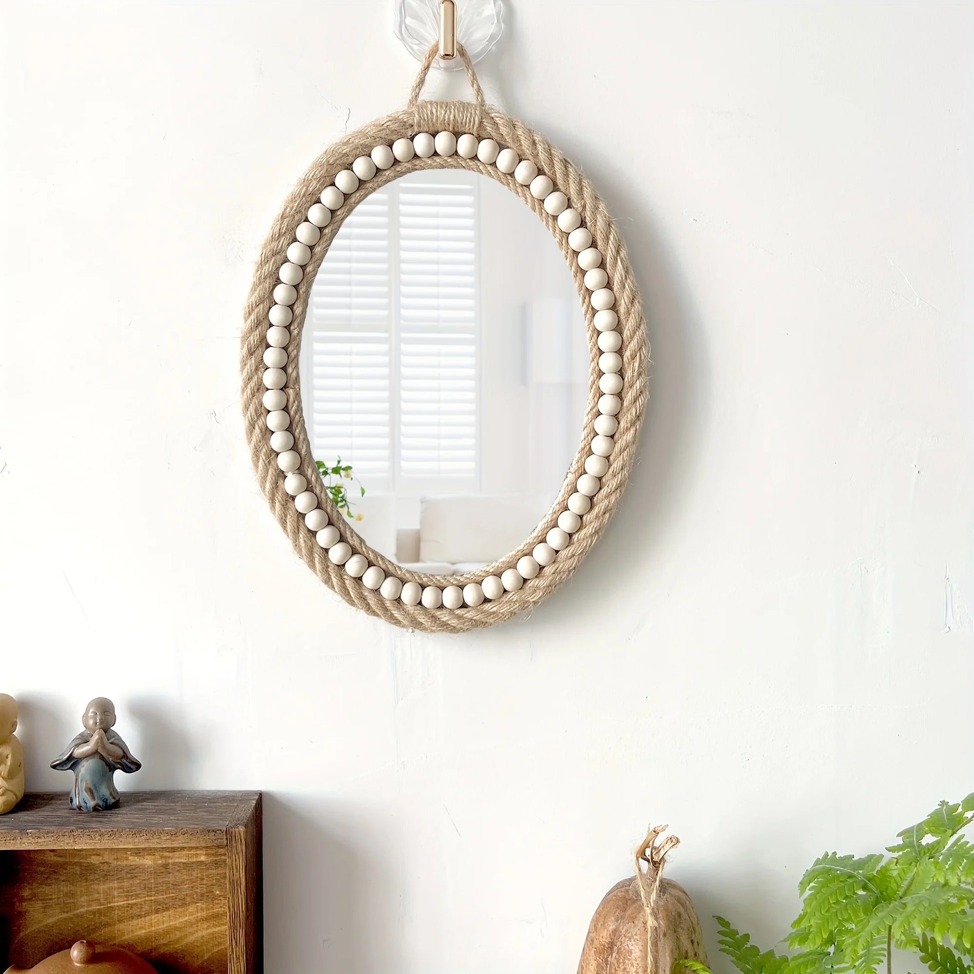 Ein Hauch von Leichtigkeit- für dein Zuhause. Dieser Boho-Spiegel kombiniert handgewebtes Juteseil mit feinen Holzperlen zu einem warmen, natürlichen Design. Ideal, um Licht und Harmonie in deinen Raum zu bringen. 🌿