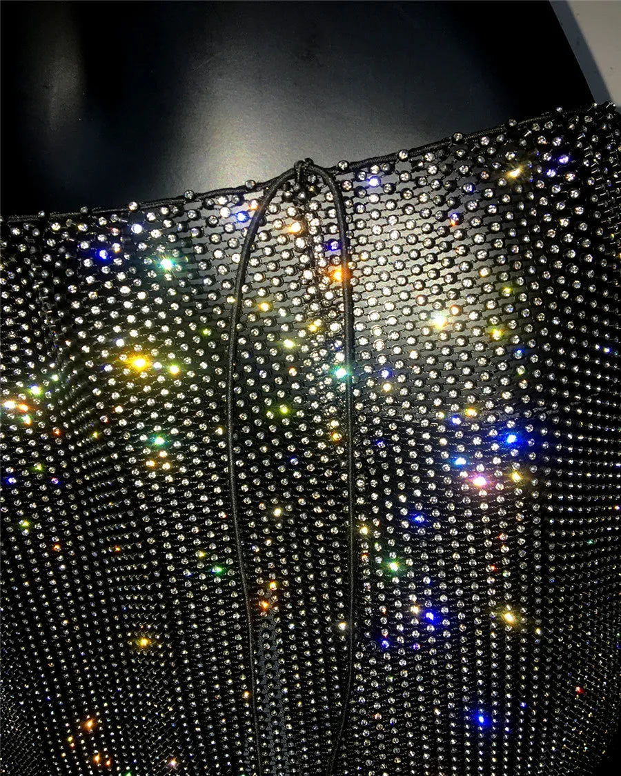 Dieses zweiteilige Glitzer-Outfit- bringt Bühne, Tanzfläche und Zeltplatz zum Leuchten. Ein tief ausgeschnittenes Crop-Top mit Cut-Out-Details trifft auf einen Minirock mit transparentem Seitenschnitt – sexy, mutig und ready für jedes EDM-Event. Ob als Solo-Look oder mit Netzstrumpf, Boots und Space-Buns kombiniert: Dein Auftritt gehört dir.✨🩱