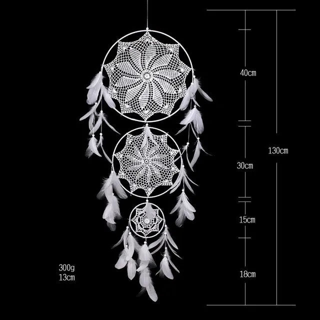 Ein echter Blickfang- dieser große Boho-Traumfänger vereint handgewebte Makramee-Kunst mit sanften Federn und optionaler LED-Lichterkette. Ob über dem Bett, an der Wand oder im Fenster – er bringt Ruhe, Harmonie und positive Energie in dein Zuhause. Überall dort perfekt, wo du dich geborgen fühlen möchtest. 🌙