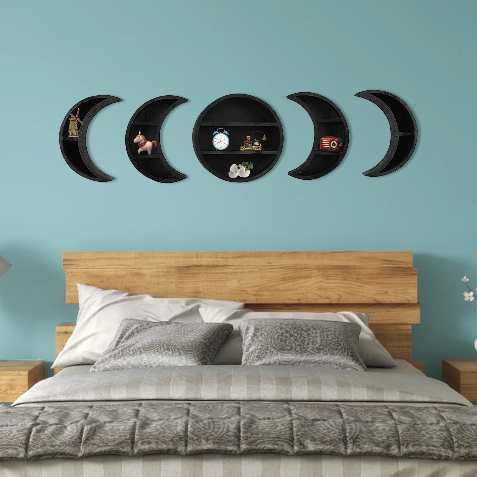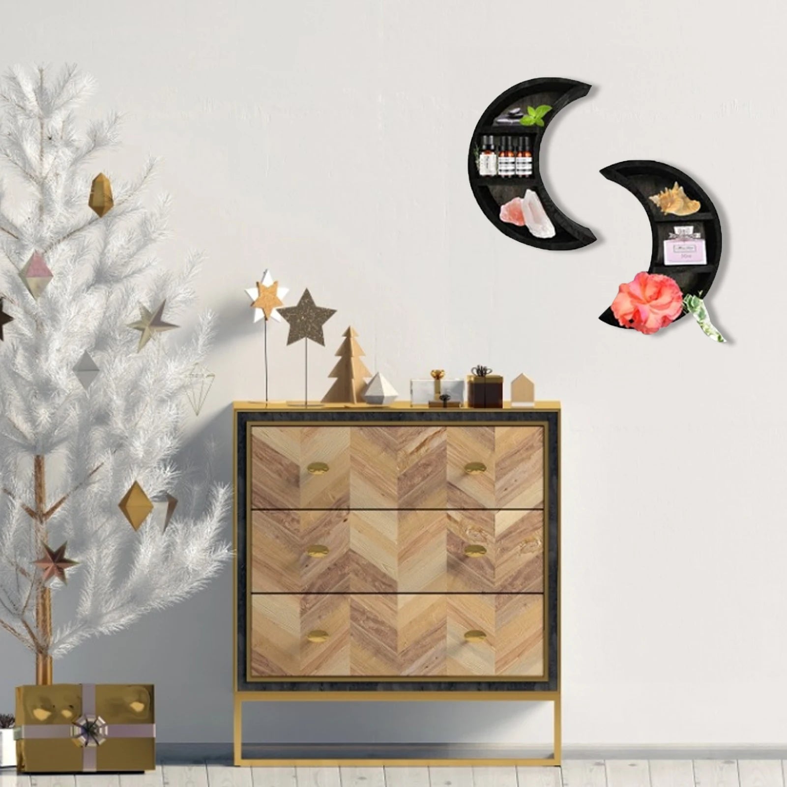 Dieses Mondphasen-Regal- verbindet Funktionalität mit spiritueller Ästhetik. Das warme Holz und die symbolische Form des Mondzyklus schaffen ein Gefühl von Balance, Wandel und innerer Ruhe – ein Design, das Tiefe und Bedeutung ausstrahlt. ✨
