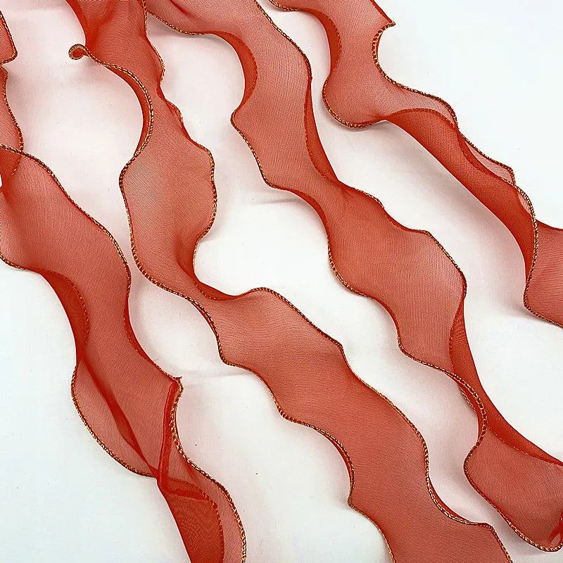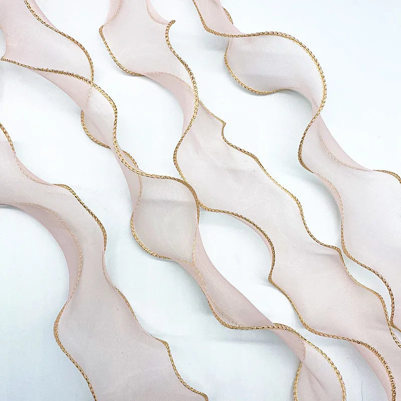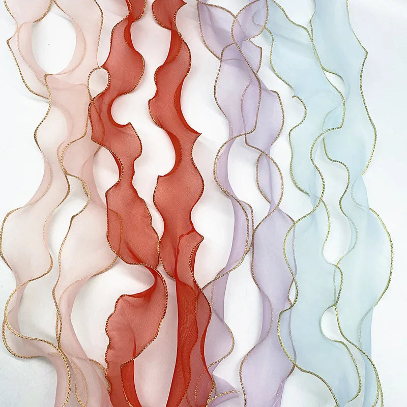 Dieses elegante Organza-Band- mit schimmerndem Goldrand setzt luxuriöse Akzente bei jeder Dekoration. Die feine Seidenstruktur mit welligem Design verleiht Schleifen, Geschenkverpackungen oder kreativen DIY-Projekten einen edlen Touch. Mit 50 mm Breite eignet es sich perfekt für auffällige Dekorationen mit stilvollem Charakter. 🎀